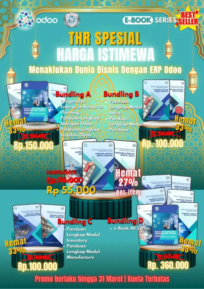 Jadikan bisnis Anda lebih efisien dan profesional dengan pemahaman mendalam tentang sistem ERP Odoo! Untuk merayakan peluncuran buku "Panduan Lengkap Modul Sales", kami menghadirkan diskon spesial 30%. Dari harga normal Rp 159.000, kini Anda bisa mendapatkannya hanya dengan Rp 111.000!