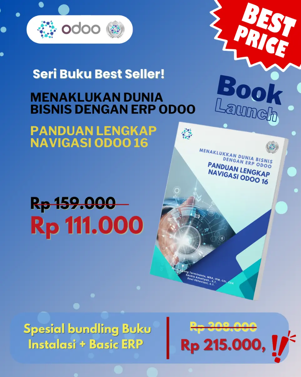 Kami dengan bangga mempersembahkan buku terbaru "Menaklukkan Dunia Bisnis dengan ERP Odoo", sebuah panduan lengkap bagi siapa saja yang ingin mengoptimalkan bisnis dengan sistem ERP berbasis Odoo. Buku ini dirancang untuk membantu baik pemula maupun profesional dalam memahami, menginstal, dan menavigasi Odoo dengan cara yang mudah dan efektif.